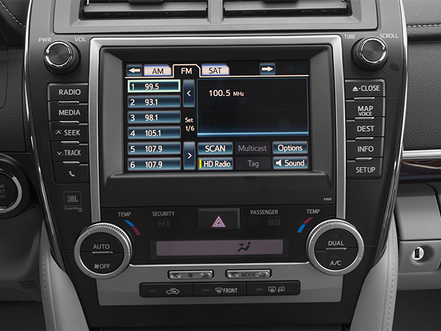 This unit keeps you comfortable with Auto Climate. Protect this vehicle from unwanted accidents with a cutting edge backup camera system. Our dealership has already run the CARFAX report and it is clean. A clean CARFAX is a great asset for resale value in the future. This unit features a hands-free Bluetooth® phone system. Front wheel drive on the vehicle gives you better traction and better fuel economy. This model contains elegant lines finished with an exquisite green color. This 2014 Toyota Camry has a 4 Cyl, 2.5L high output engine. Set the temperature exactly where you are most comfortable in this 2014 Toyota Camry . The fan speed and temperature will automatically adjust to maintain your preferred zone climate. The fog lights cut through the weather so you can see what's ahead. Help alleviate lower back pain with the driver seat lumbar support in this unit. Easily set your speed in this mid-size car with a state of the art cruise control system. Increase or decrease velocity with the touch of a button.