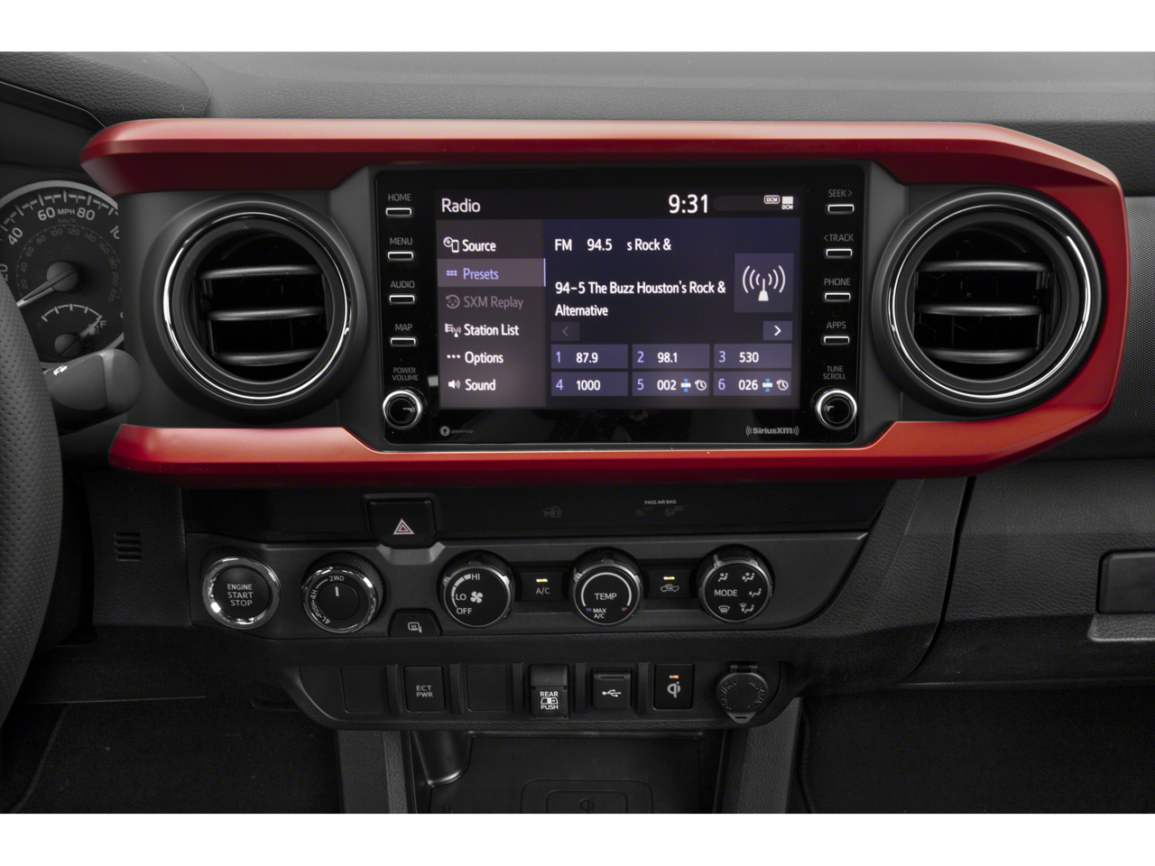 TRD Premium Sport Package: 17" X 7.5J Machined Alloy Wheels; Smartphone and Mobile Device Charger; Power Sliding Rear Window with Privacy Glass; Automatic Headlights; Entune Premium JBL AM/FM/CD Radio with Navigation and App Suite; Smart Key with Push Button Start; Power Tilt/slide Moonroof; 120V/400W Deck Mounted AC Power; Heated Front Seats; Color-Keyed Overfenders; Leather Seat Trim; Auto-Dimming Rearview Mirror with HomeLink; Engine Immobilizer; P265/65R17 AS Tires; Front Seats. Technology Package: Rear Parking Assist Sonar; Blind Spot Monitor with Rear Cross Traffic Alert; Mesh Front Grille. LED Fog Lamp with Black Bezel. All Weather Floor Liner and Door Sill Protector. Tailgate Emblem. Mudguards. **Equipment listed is based on original vehicle build and subject to change. Please confirm the accuracy of the included equipment by calling the dealer prior to purchase.**